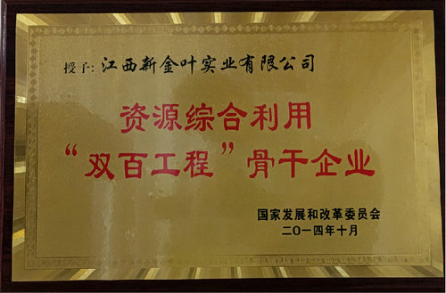 2014年10月被國(guó)家發(fā)改委列入第二批資源綜合利用“雙百工程”骨干企業(yè)